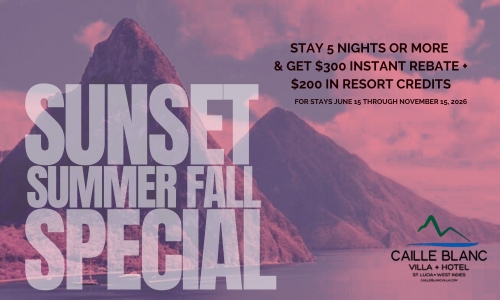 Celebrate your time in St. Lucia with chilled sparkling wine, tropical flowers, and St. Lucian chocolate on arrival. Choose this package at check out. $250 + tax + service charge