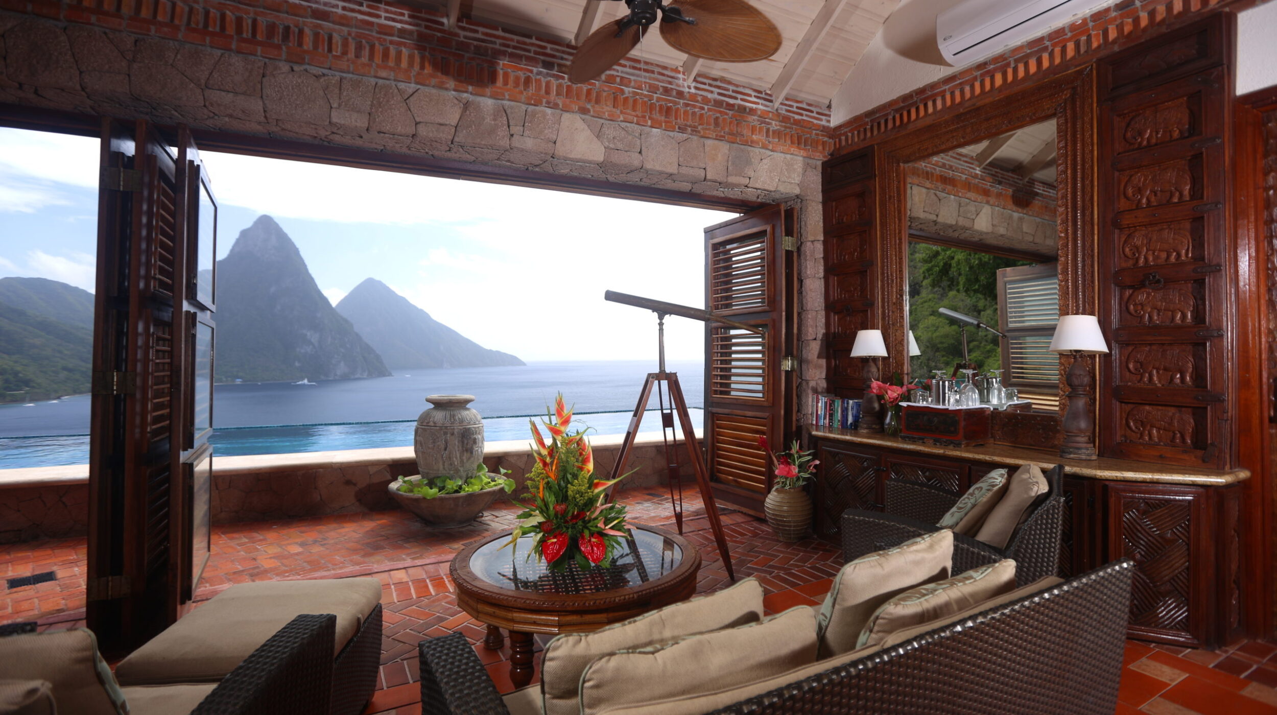 Caille Blanc Villa & Hotel operates as a one-of-a-kind luxury private boutique hotel with a 65 foot infinity pool and waterfall facing the majestic Pitons and the Caribbean Sea. Previously a private home, Caille Blanc Villa & Hotel is a few minutes drive to the pristine beaches of St. Lucia with superb snorkeling and world class scuba diving in an underwater park off the beach. Hidden beneath Caille Blanc Villa & Hotel lies a “snorkel cove” perfect for wiggling your toes in the sand and listening to the ocean waves.
