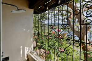 The Bouganvilla Suite has a private dunking pool overlooking the Pitons and is appointed with a four-poster, king size bed as well as a four-poster day bed. The air conditioned Bouganvilla Suite connects to the Living Room/Entertainment Center. The granite bathroom has a large shower and bath with an open picture window view of the Pitons. The terracotta patio outside the bedroom’s plantation doors is very secluded for your private moments in the dunking pool viewing the majestic Pitons.